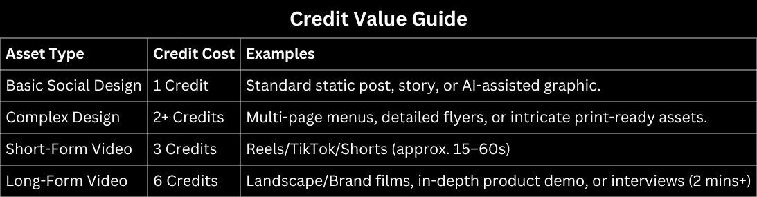 Graphics trade-off:We prioritise speed and budget over 100% bespoke or hand-drawn illustration.To keep costs down, designs are final; however, you may swap one of your monthly design credits for a revision or purchase additional edits upon request.
